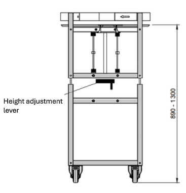 • 4 stainless wheels (2 swivel with brakes, 2 fixed)